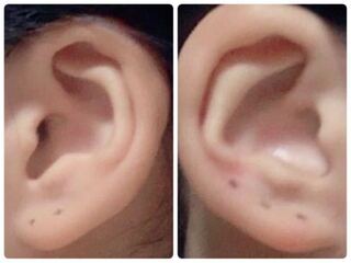 ピアスを開ける位置 左2つ右1つ友達とお揃いで開ける予定なのですが この位置っ Yahoo 知恵袋